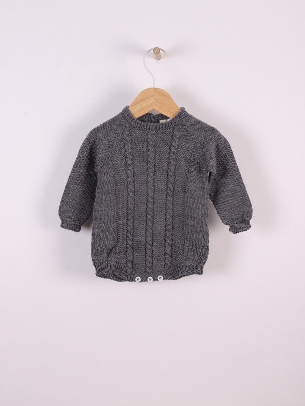Pagliaccetto corto a maniche lunghe lavorato a maglia in una splendida lana merino extrafine, e decorazioni in treccia