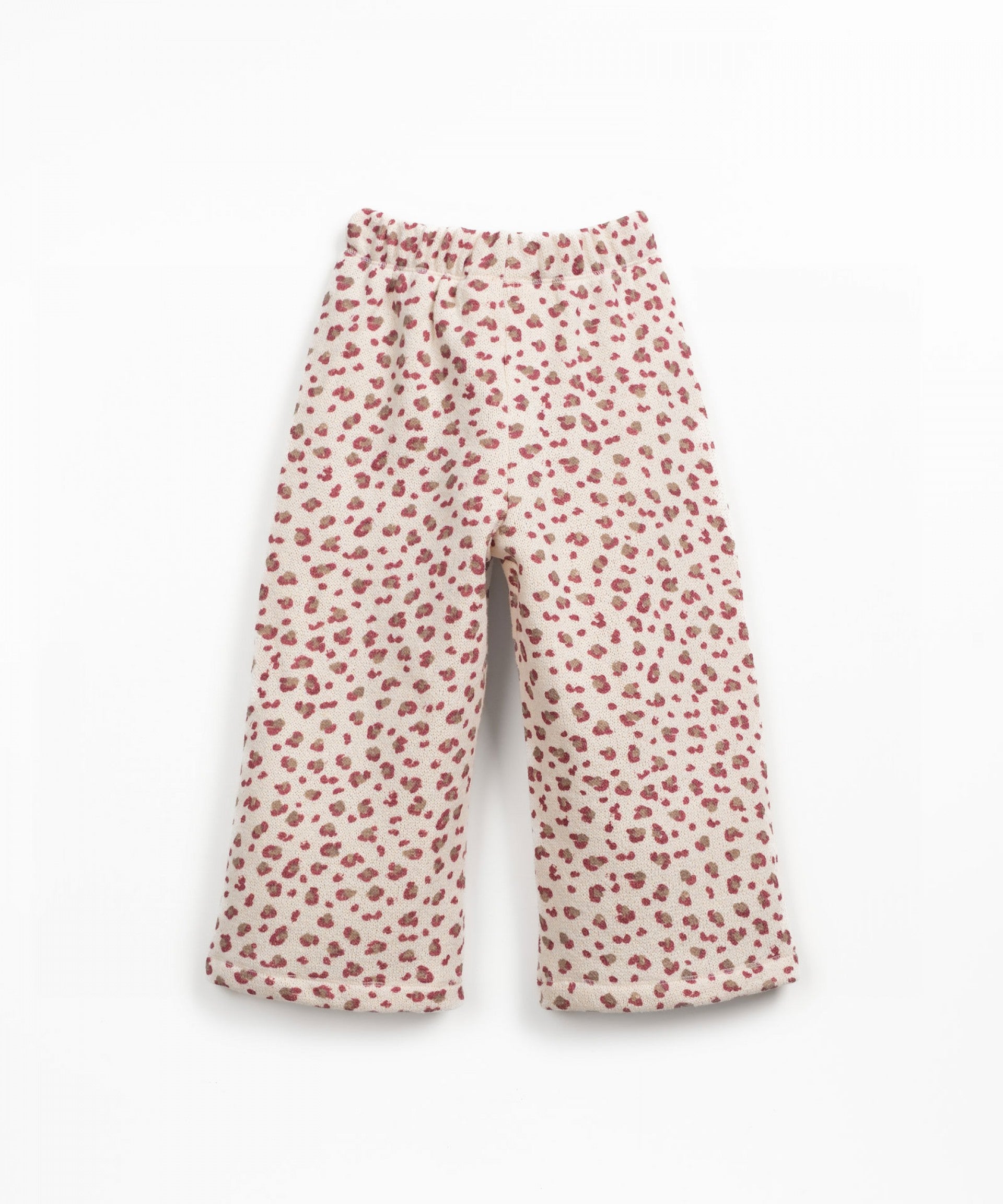 Questi pantaloni sono realizzati in maglia con una miscela di cotone rigenerativo e cotone riciclato, nel colore Bianco Sporco. Presentano un taglio ampio, vita elasticizzata e stampa a macchie animalier.