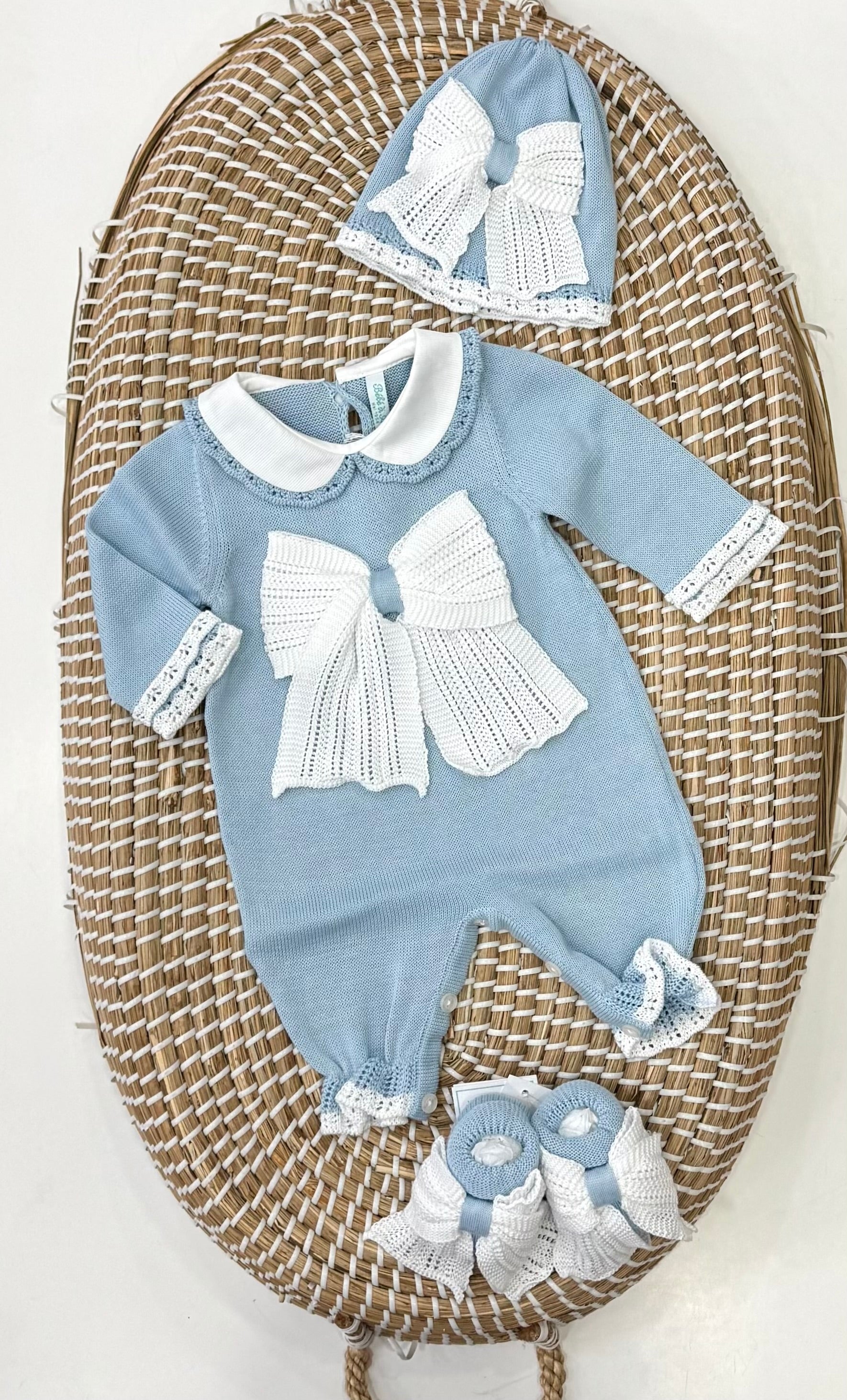 completo di cappello e scarpine con fiocco