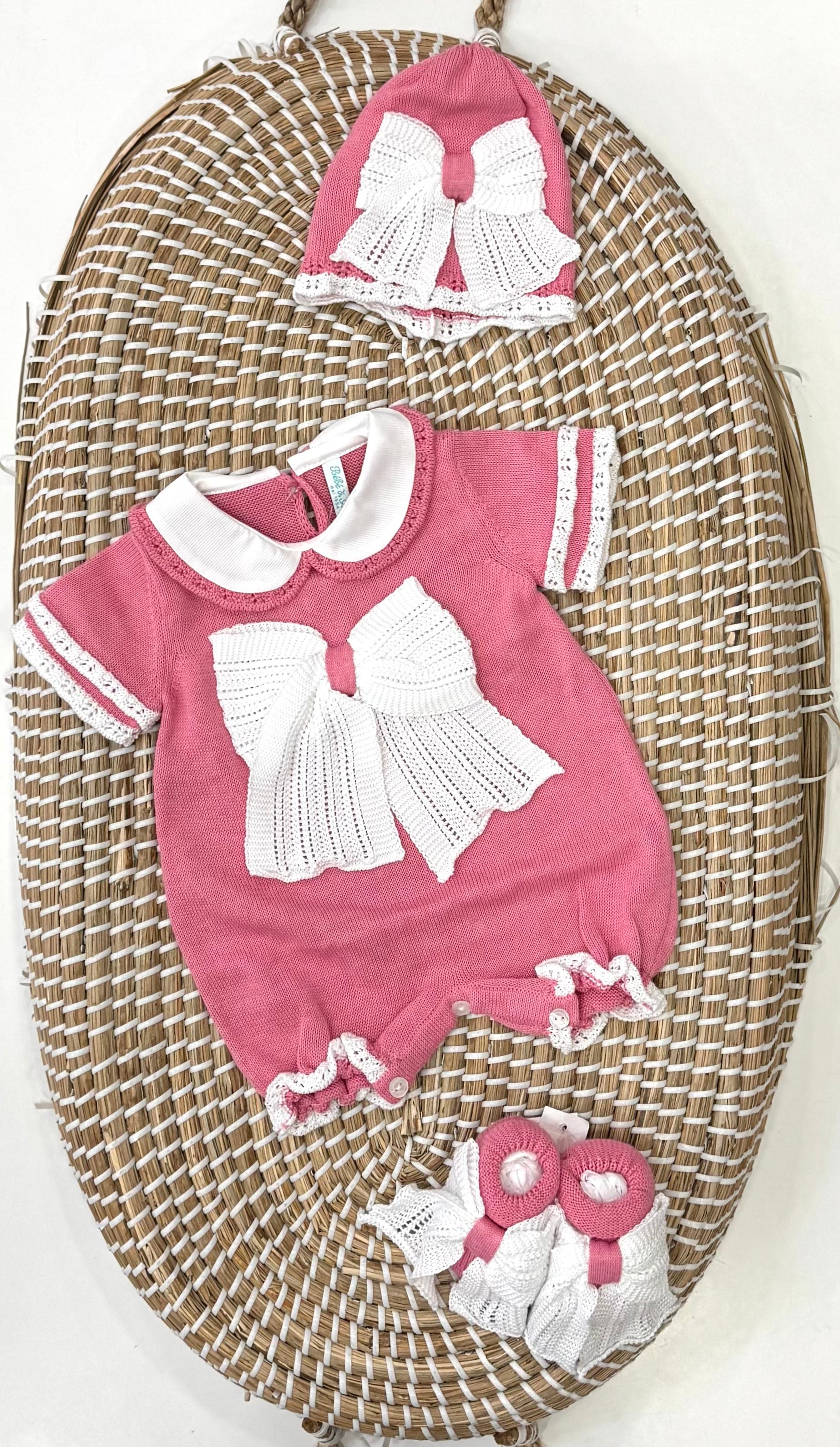 Pagliaccetto in 100% filo di cotone con ricamo in rialzo con fioco in bicolore