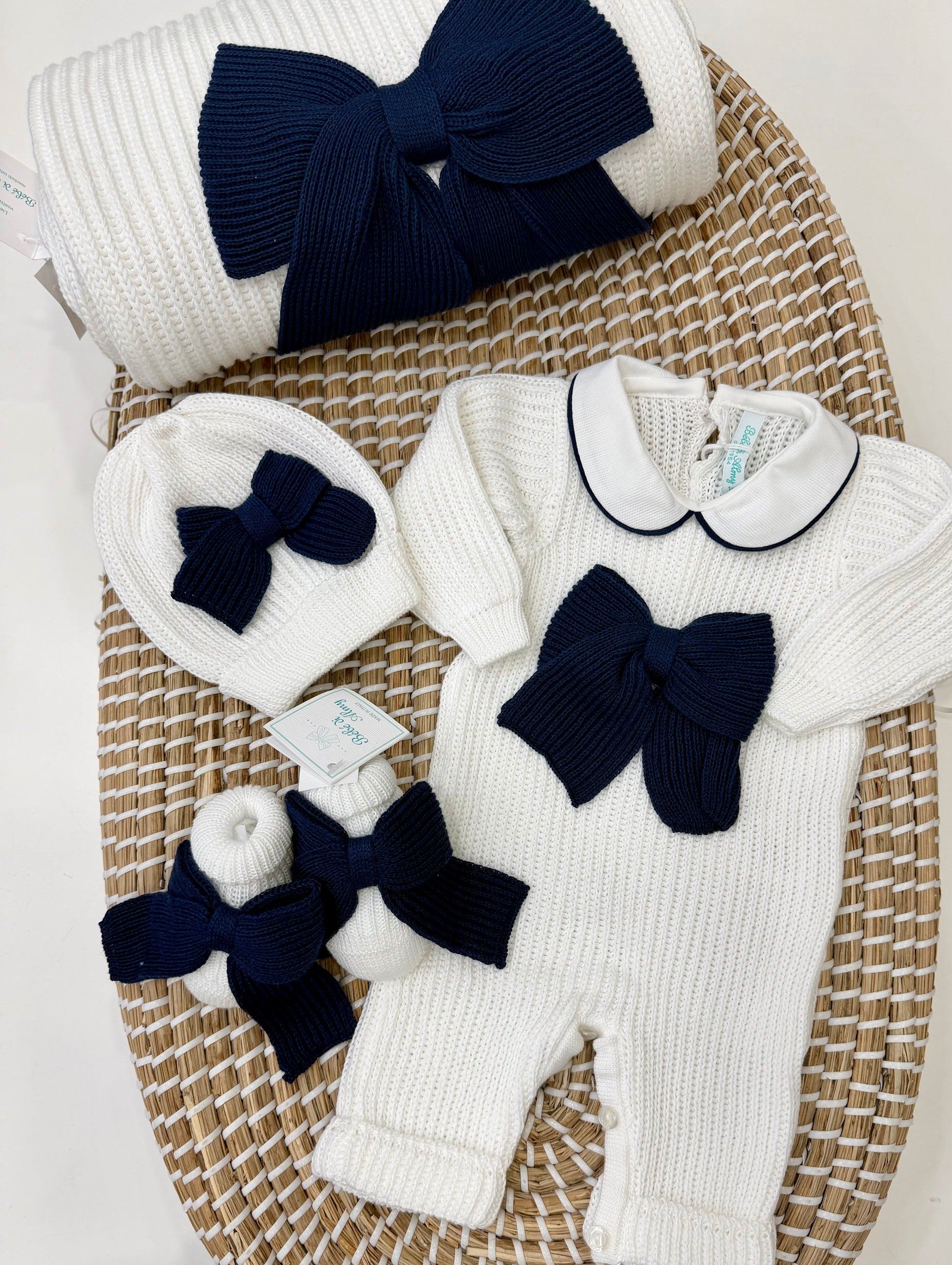 Set completo di copertina babbucce, cappello e tutina manica lunga in 100% filo di cotone