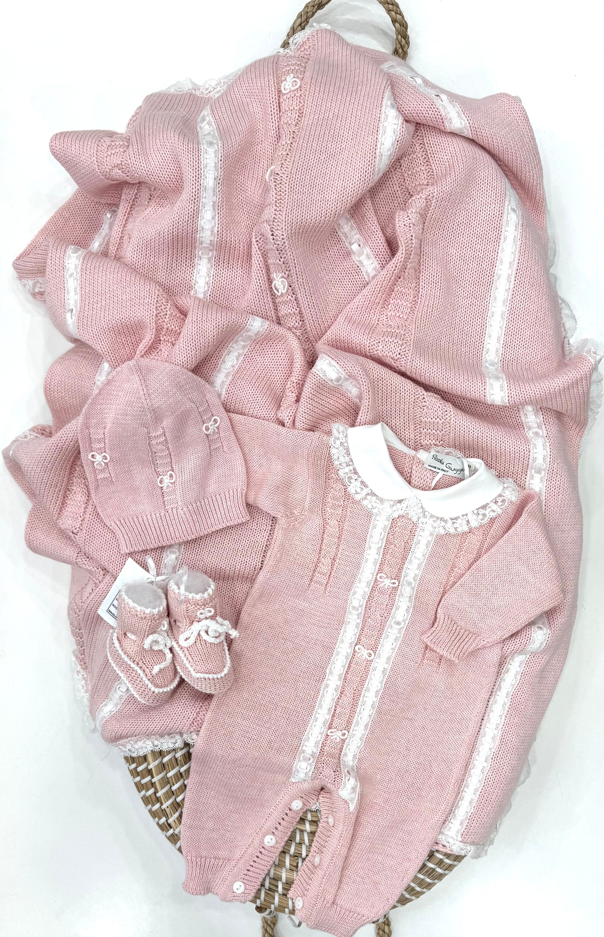 Set completo di copertina babbucce, cappello e tutina manica lunga in 100% filo di cotone